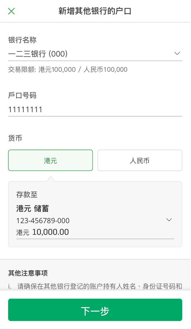 • 经转数快转账至你指定的其他本地银行账户