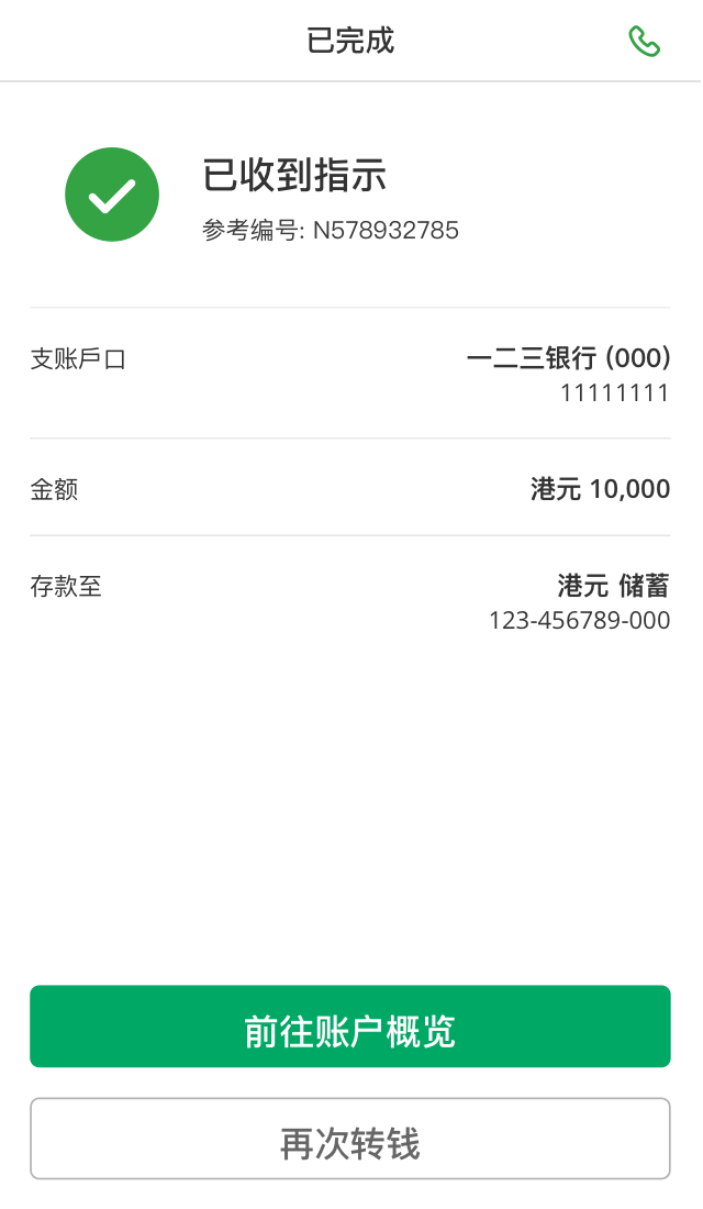 如你进行的是即时转账,当你的指示一经处理后,你就不能更改或删除指示。如你进行的是预设转账,你可前往“转账及付款” > “本地”分页 > “待辨交易”页面删除此转账。
