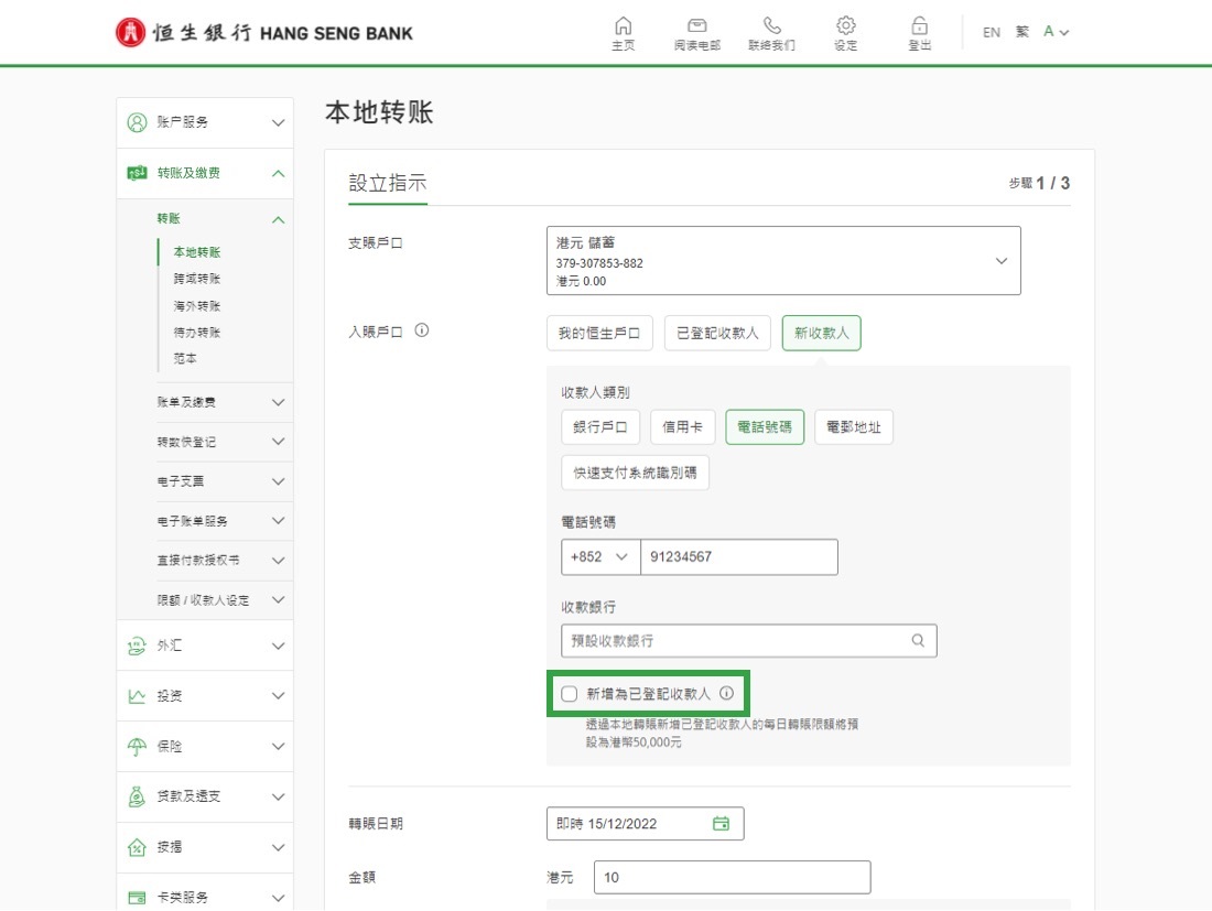 • 网上新增已登记之收款人[5]