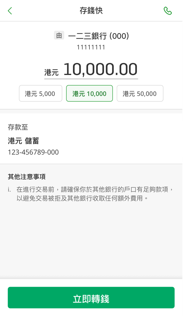 為保障客戶,我們預設「存錢快」的現行每日轉賬限額為港幣1,500,000元。