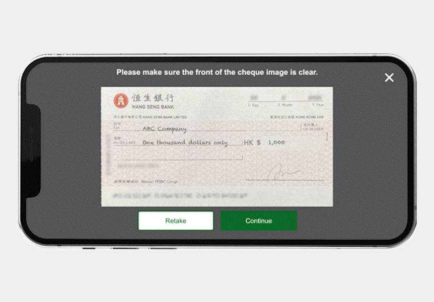 Step 1Please place the cheque on a solid dark background to avoid reflection. |