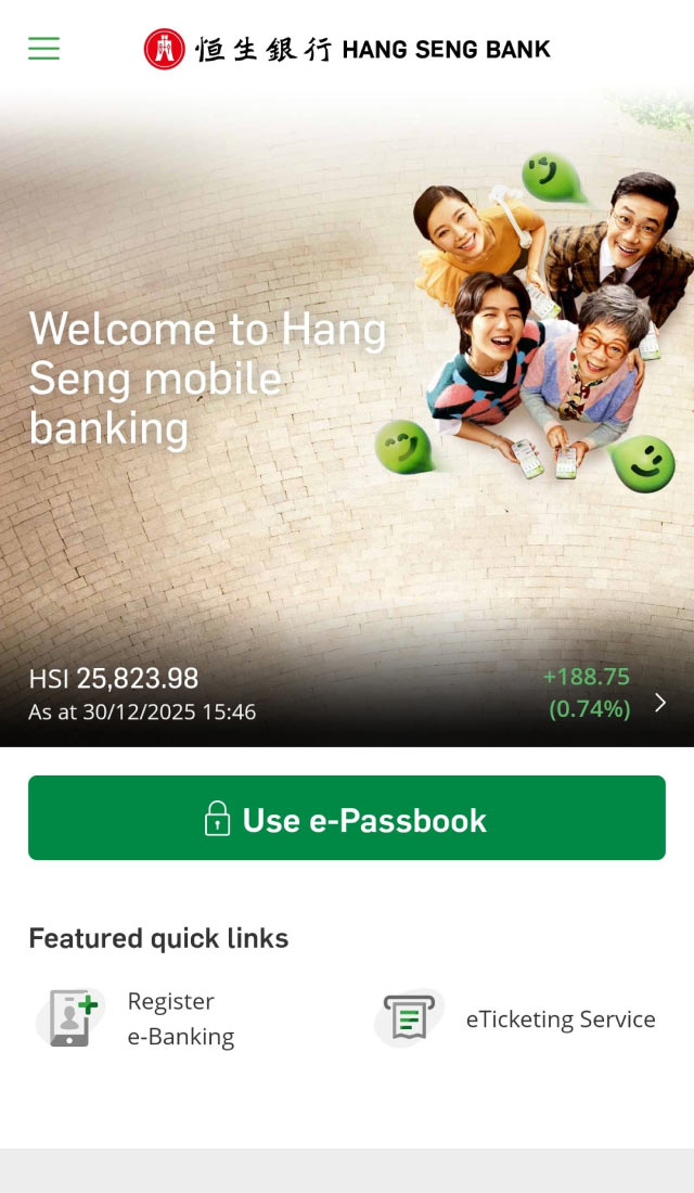 If you hold a personal HKD Passbook Savings Account and are not a Hang Seng Personal e-Banking customer, you’re eligible to apply e-Passbook.