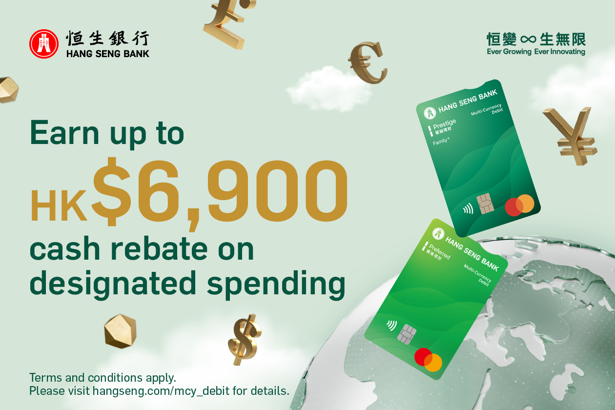 Get a card now to enjoy the exceptional debit card privileges and earn up to HKD6,900 in cash rebates!