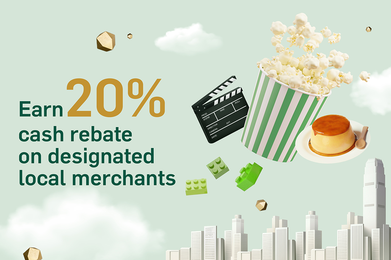Enjoy 20% cash rebate when settling eligible transactions at below designated local merchants. Each customer can earn an accumulated cash rebate up to HKD150 per phase, and a total cash rebate of HKD300 during the Promotion Period. No need to register.