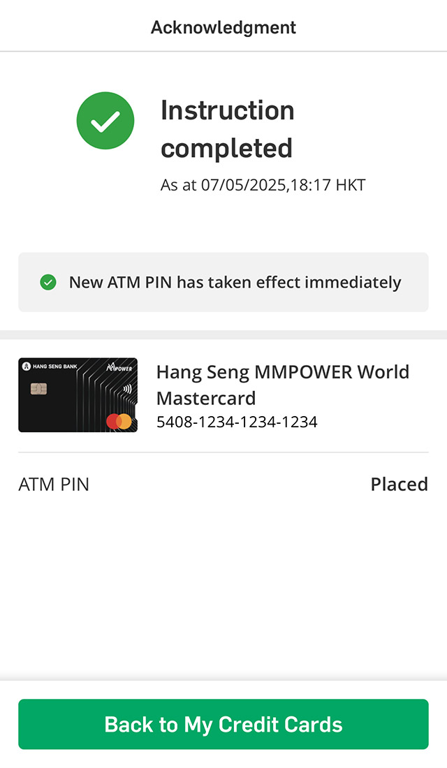 Forgotten your credit card PIN or looking to change it regularly for extra security? You can reset your PIN via Hang Seng Mobile App.