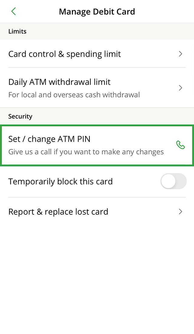 Primary and supplementary cardholder can set up / change their debit card ATM PIN by calling our Customer Service Hotline.