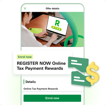 Log on to Hang Seng Mobile App and register for the "Online Tax Payment Rewards" reward via +FUN Centre