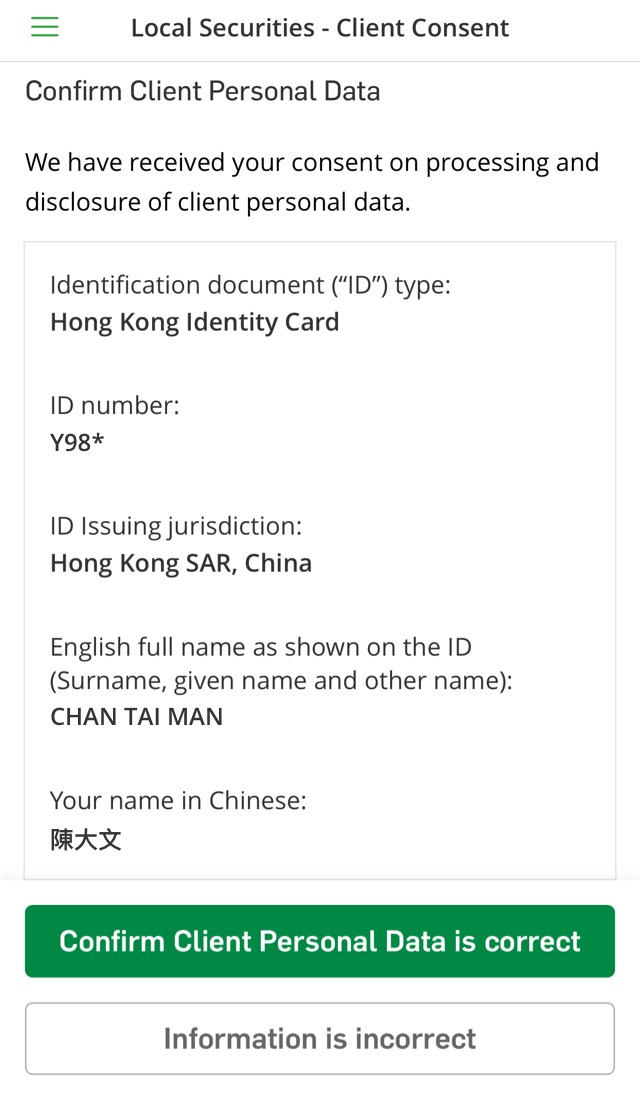 If you are holding a HKID Card, you can provide consent via Hang Seng Personal e-Banking, Hang Seng Mobile App, Hang Seng Invest Express mobile app following these steps or by going to our branches.