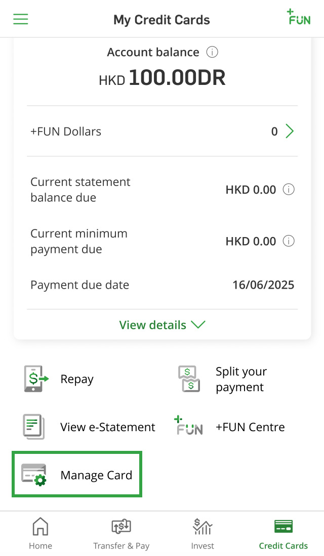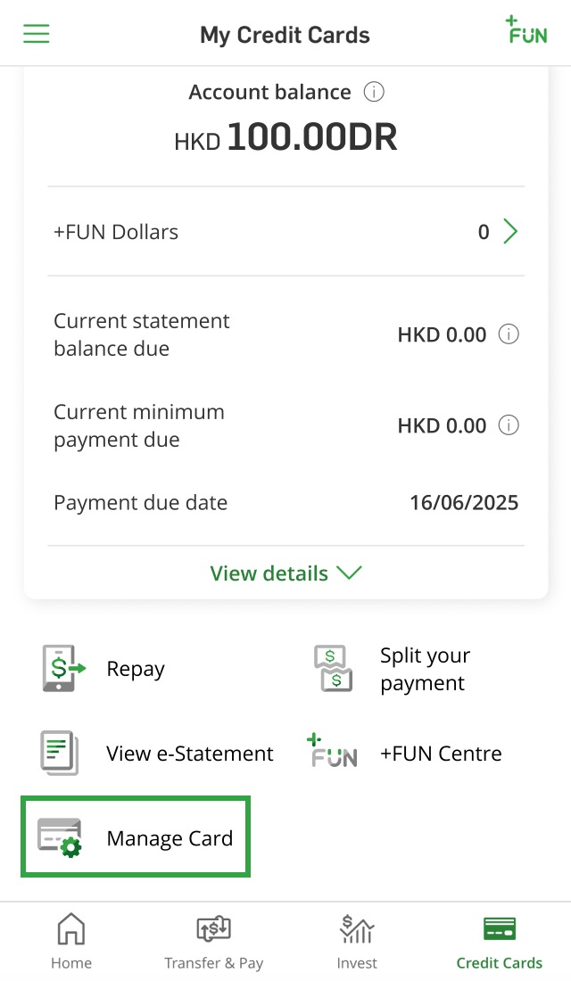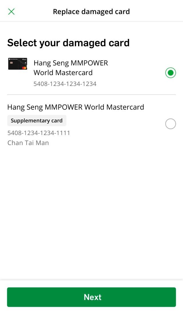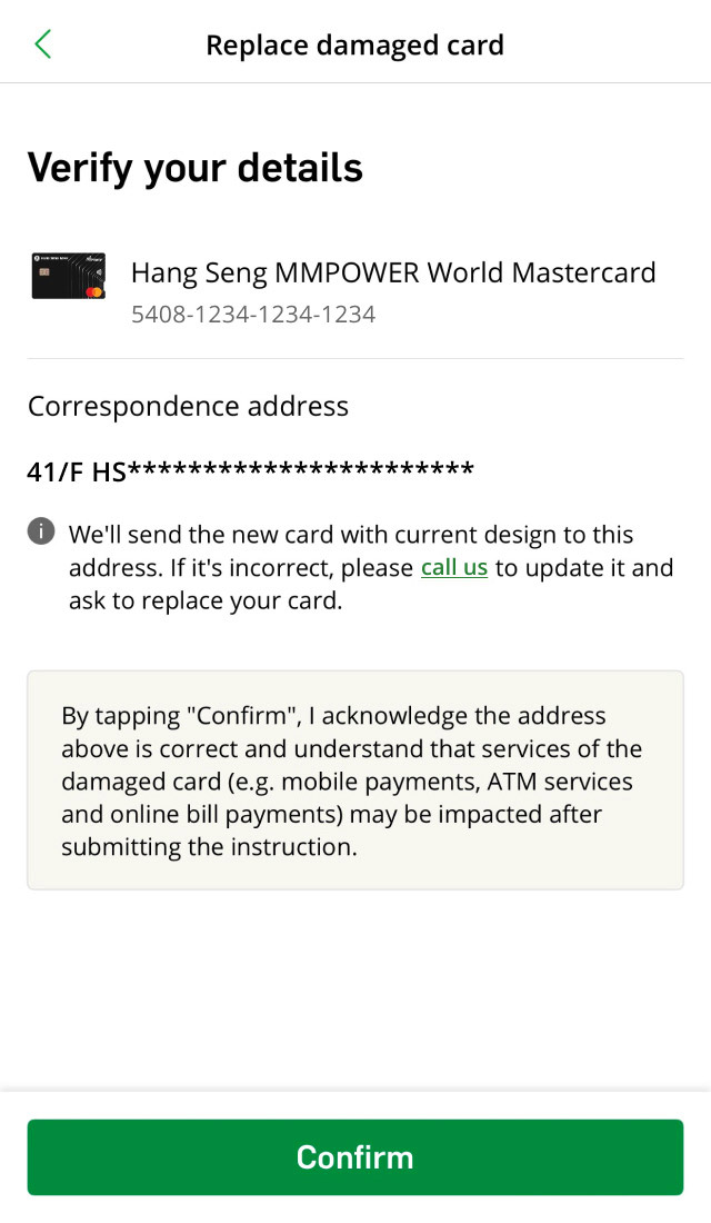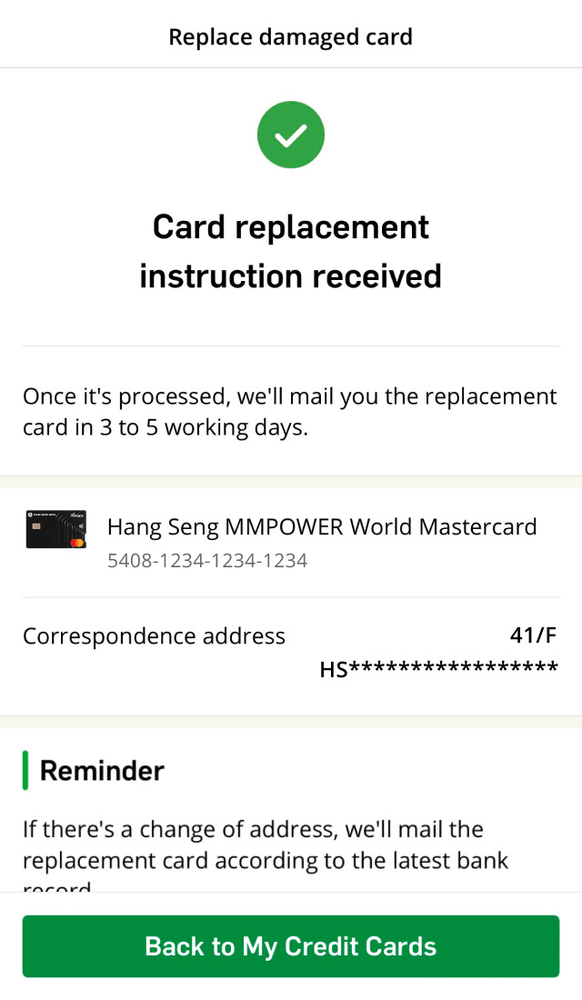 Replace your damaged card via Hang Seng Mobile App.