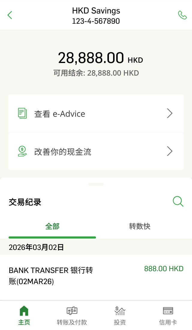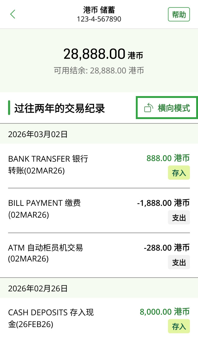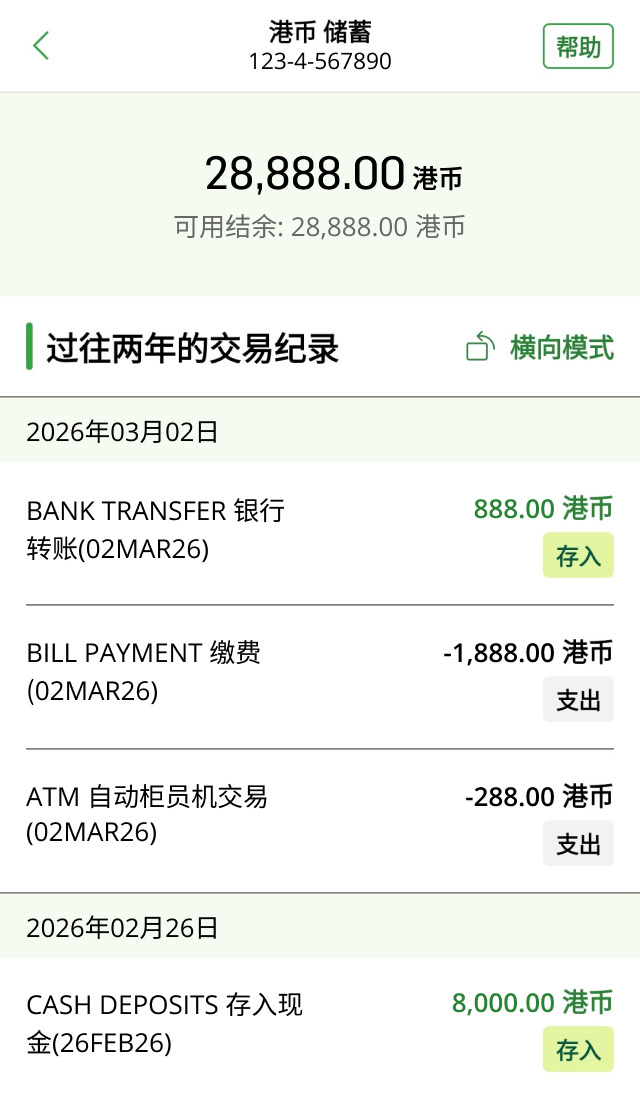 如果你已有个人e-Banking,可无需申请“存折宝”,直接登录恒生Mobile App后,即可在账户详情页面查阅过往7年的交易纪录。