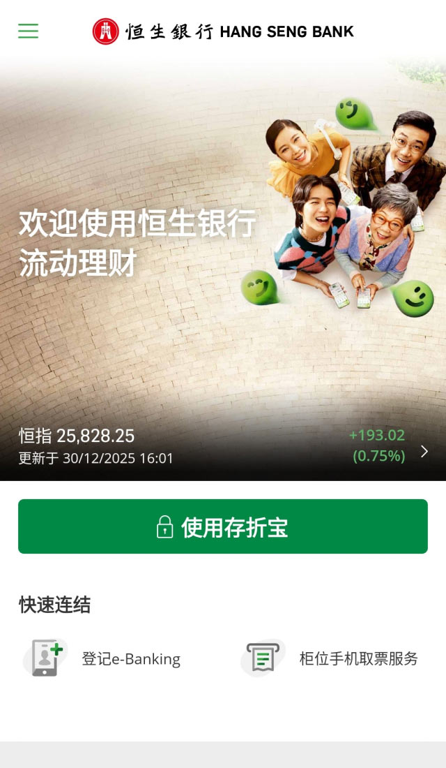 “存折宝”及恒生Mobile App的实际表现会因个别设备而异。恒生Mobile App在读取“存折宝”时可能受软件/韧体版本、NFC侦测区域、作业系统设定、操作环境及网络连接等因素所影响。