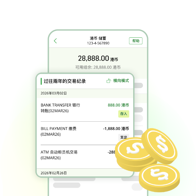 如你为恒生e-Banking客户,只需登入恒生Mobile App,便可享受已升级的介面。轻松查阅港元存折储蓄账户近2年的交易纪录和索取过往7年的储蓄账户纪录报告,包括已列印在实体存折的纪录和无折收支项目详细清单(net back items)。