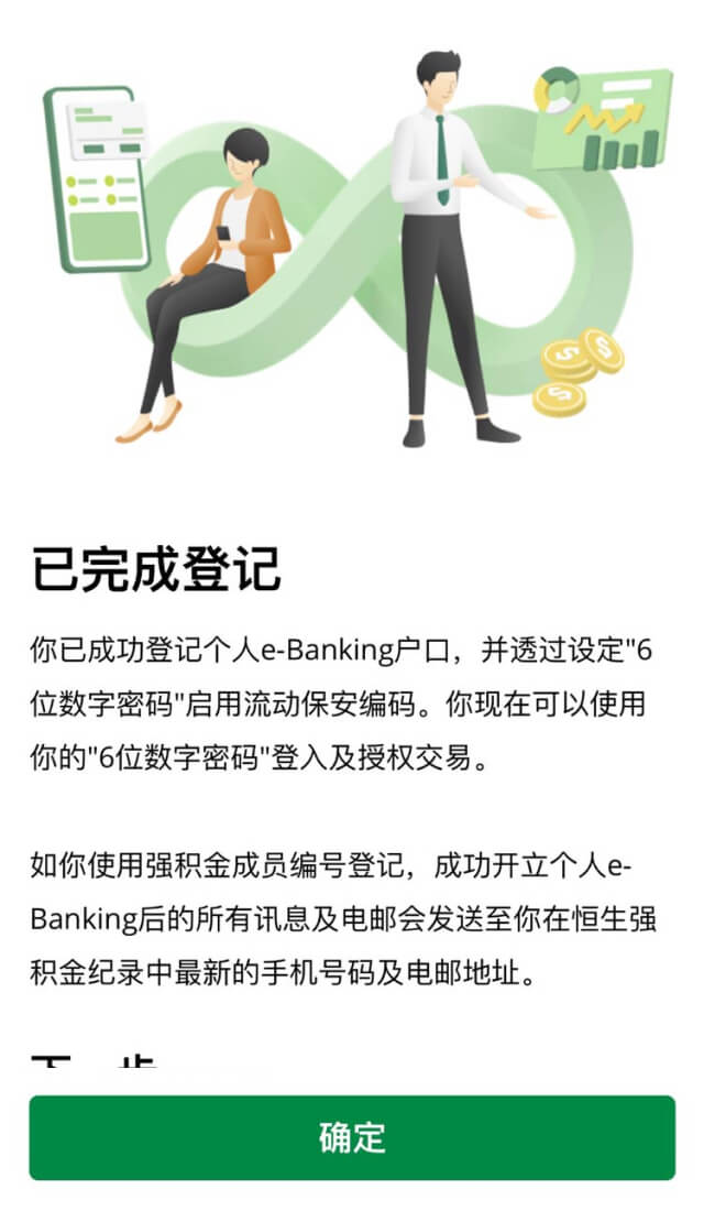 这表示我们正在核对你提交的资料,你现在可以离开恒生Mobile App并等待通知。 当你收到成功登记及启动流动保安编码的短信及电邮通知后,你可以重返恒生Mobile App并直接登入以享用我们的理财服务。