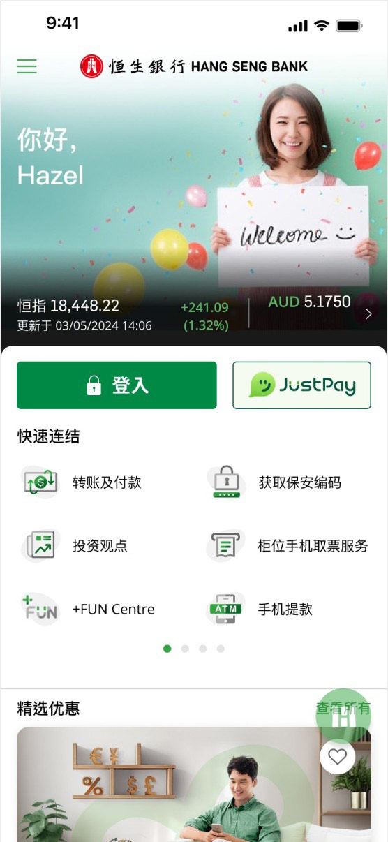 只要在恒生Mobile App完成启动流动保安编码去绑定你的个人设备,之后你就可以于同一设备直接使用生物认证或"6位数字密码"登入恒生"投资快"应用程式。