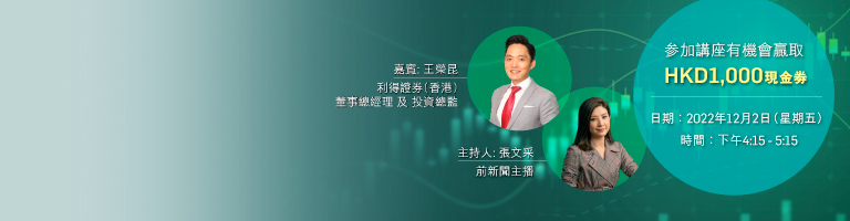 此線上講座內載有及/或提供之資料僅供一般資料及參考之用,並不構成,亦無意作為,也不應被詮釋為專業意見、要約、招攬或建議投資於當中所述之任何證券或投資項目。投資者須注意,所有投資涉及風險(包括可能會損失投資本金),股票、外匯、商品及投資產品之價格可升亦可跌,而所呈列的過往表現資料並不表示將來亦會有類似的表現。投資者須了解不應只根據此線上講座而作出任何投資決定。因此,在作出任何投資決定前,投資者應考慮該投資是否適合其本身,包括投資目標、投資經驗、投資年期、財政狀況、承受能力的風險、 稅務後果及特定需要,亦應詳細閱讀相關產品之銷售文件及條款細則(包括當中所載之風險因素之全文)。投資者如對其投資有任何疑問,請諮詢獨立的專業意見。