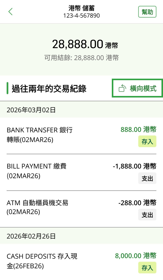 如你為恒生e-Banking客戶,只需登入恒生Mobile App,便可享受已升級的介面。輕鬆查閱港元存摺儲蓄戶口近2年的交易紀錄和索取過往7年的儲蓄戶口紀錄報告,包括已列印在實體存摺的紀錄和無摺收支項目詳細清單(net back items)。