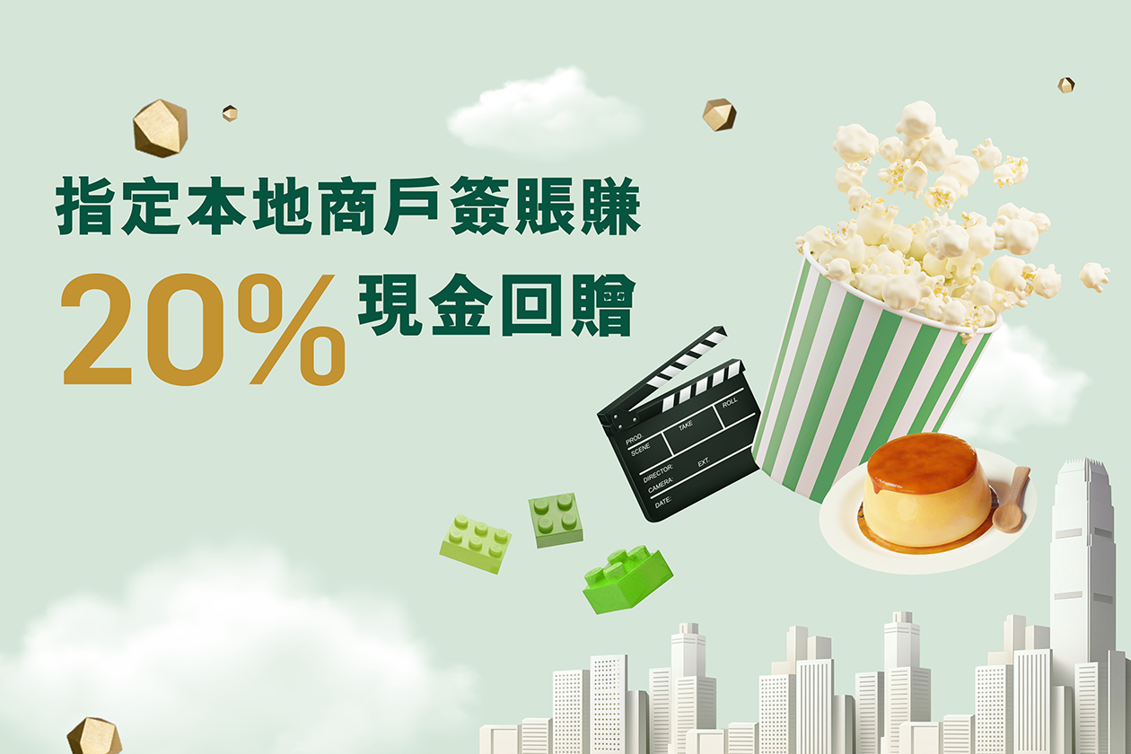 由2026年1月1日起至3月31日,於以下指定本地商戶作合資格交易,可享20%現金回贈。每位客戶之累積現金回贈上限為港幣120。毋須登記。