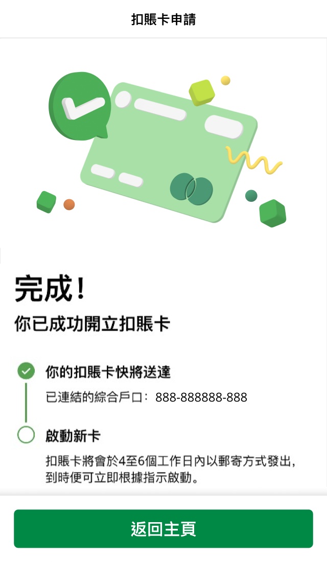 收到實體卡後,你可根據以下方式啟動扣賬卡: