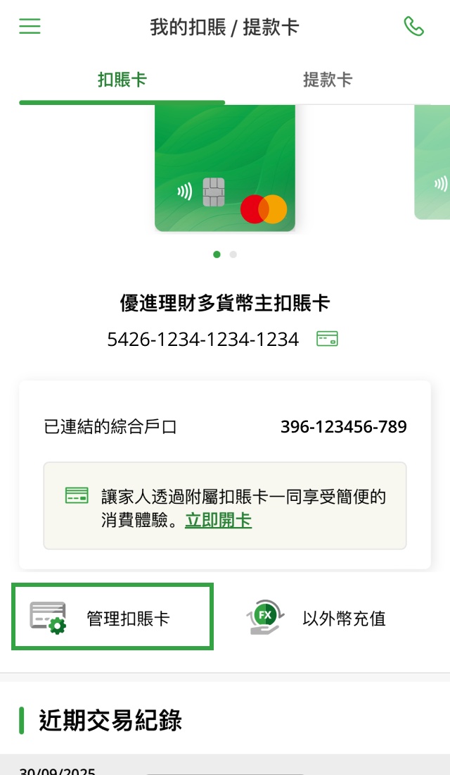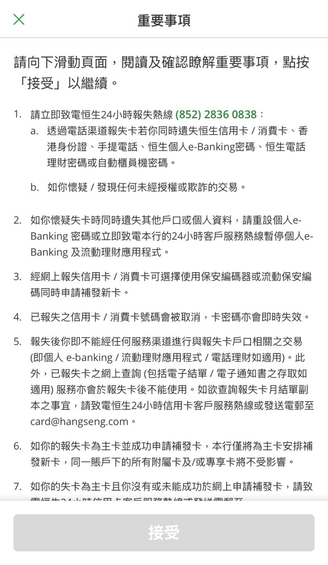 如果你遺失了扣賬卡,你可以透過恒生Mobile App或致電24小時報失卡熱線(852) 2836 0838報失及申請補發卡;如發現扣賬卡有任何未經授權的交易,請立即填妥未經授權交易申報表格。