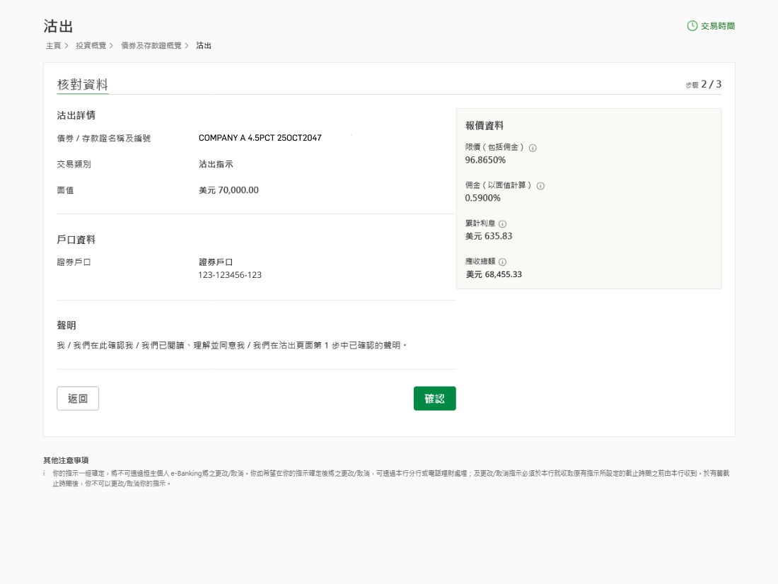「債券及存款證買賣服務」之相關文件