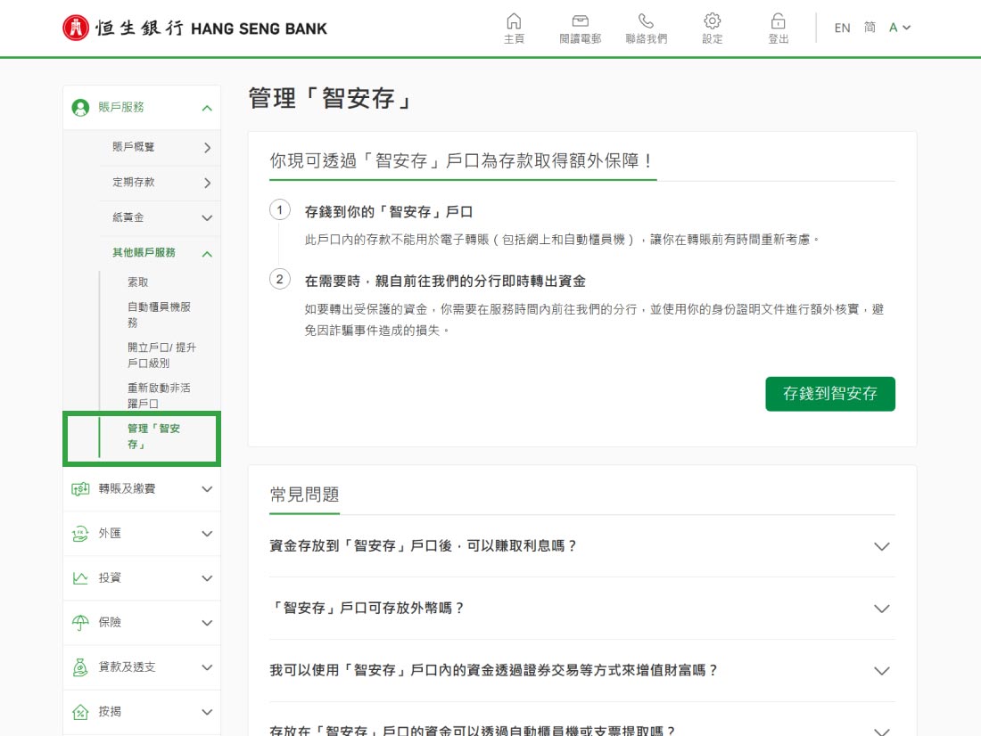 請注意,我們可能會不時更改「智安存」戶口服務或限制。